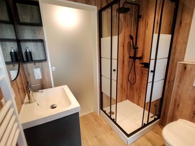 im Wohn-Esszimmer sowie ein modernes Dusch-WC. 2 Balkone laden zum Genießen der