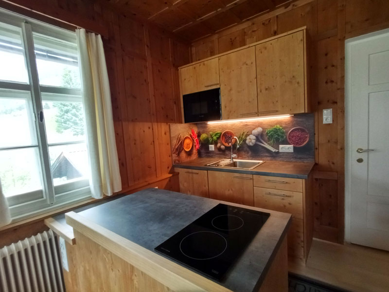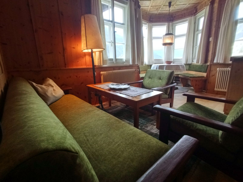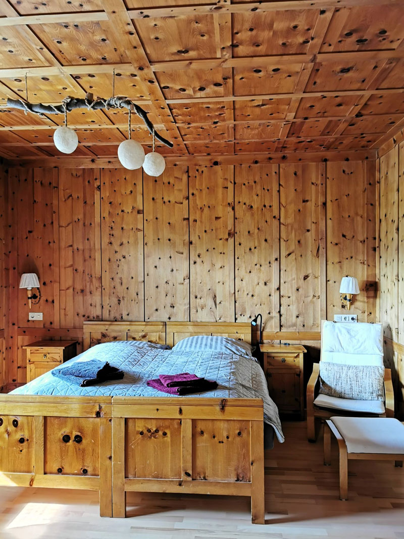 sind alle Räume mit der original Zirbenvertäfelung verkleidet, die Böden